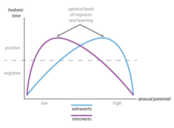 For introverts, this kind of stimulation can be overwhelming, since their rate of arousal is much higher,